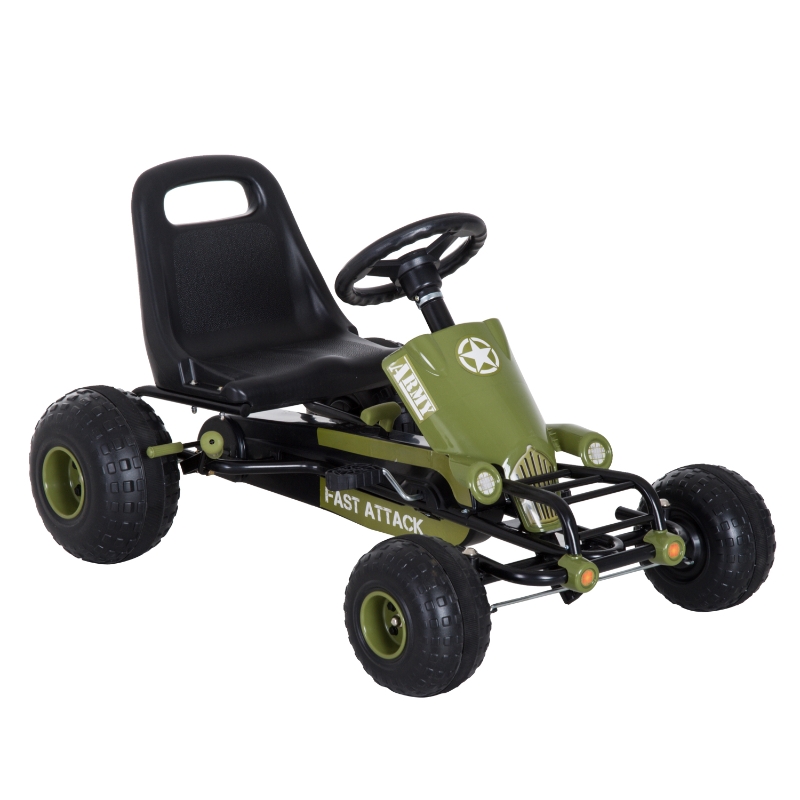 Barn Gokart med Pedaler, 5-12 år, Gummiluft Däck, Grön+svart