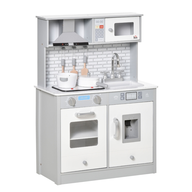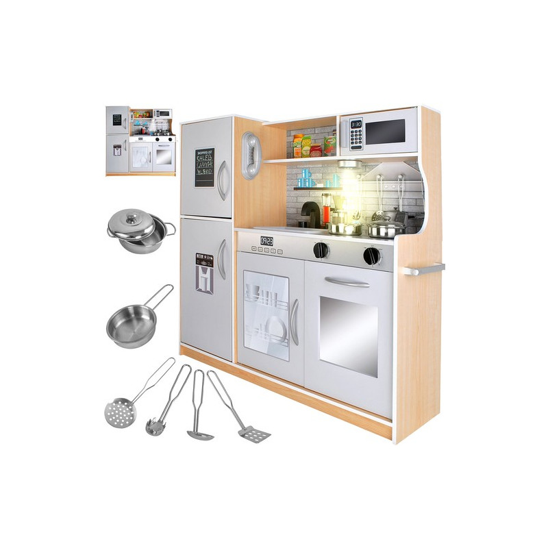Stort legetøjskøkken i træ med tilbehør, lyd og lyseffekt 80x24x80,5 cm Eg/Grå