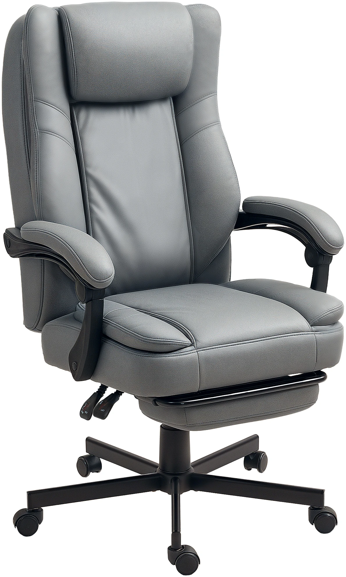 Ergonomisk massagekontorstol med vippefunktion og fodstøtte, grå