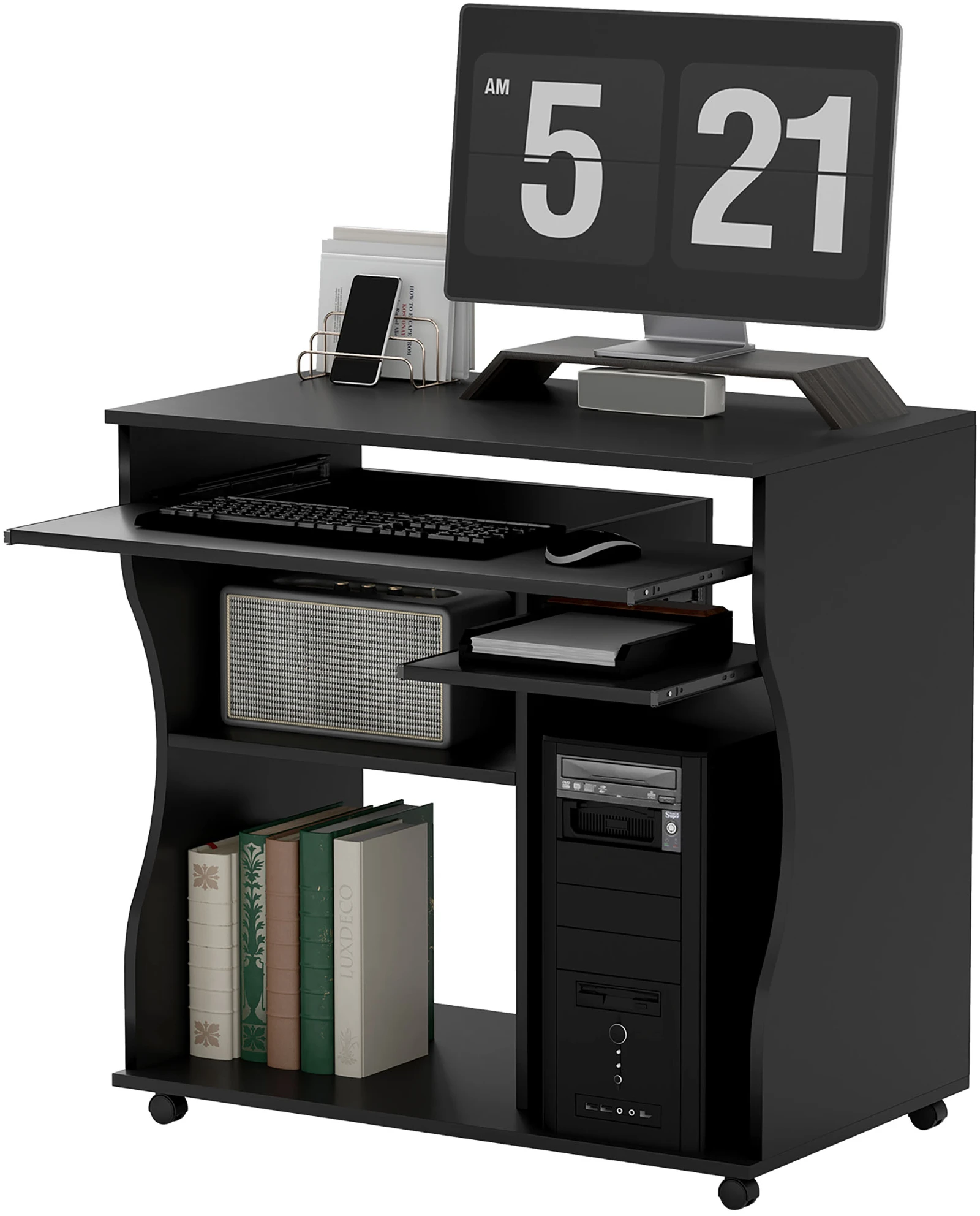 Rullende skrivebord med kompakt design – sort, 80 x 48 x 76 cm