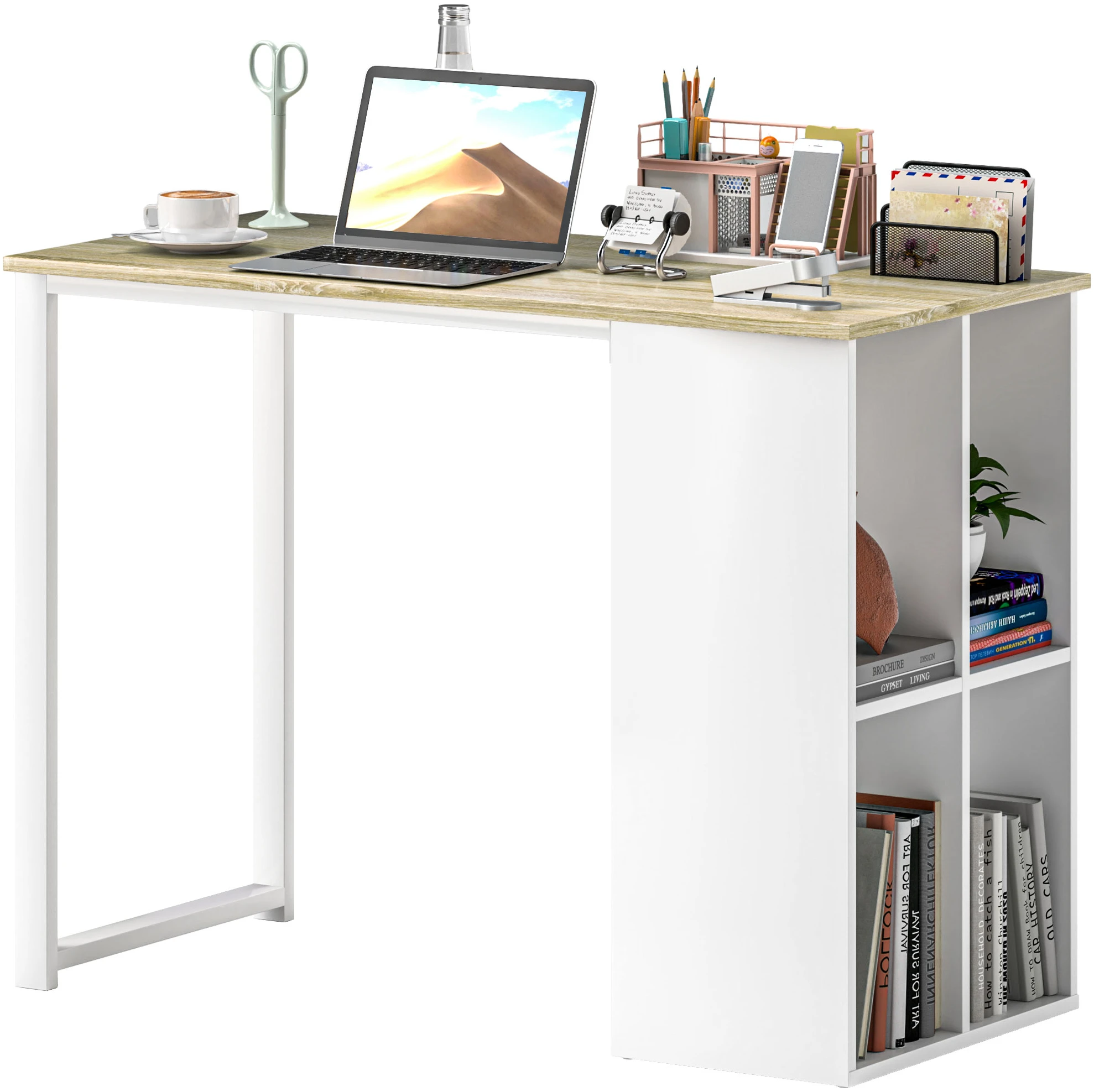 Kompakt Skrivebord med Opbevaringsrum 100 x 54 x 75 cm Hvid
