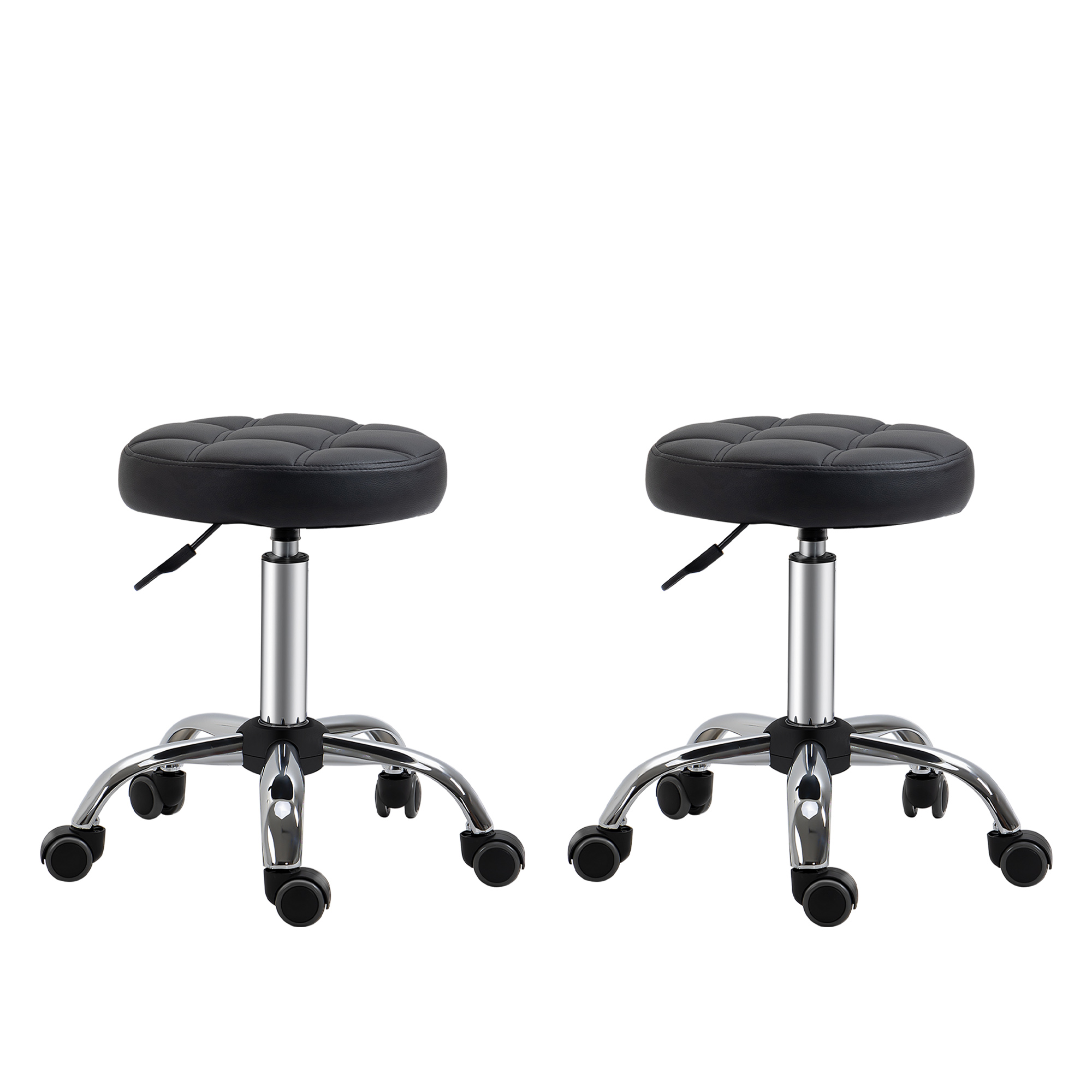 Arbejdspall 2-pack med Hjul, Læder, Sort/Sølv Ø35,5 x 48-63 cm