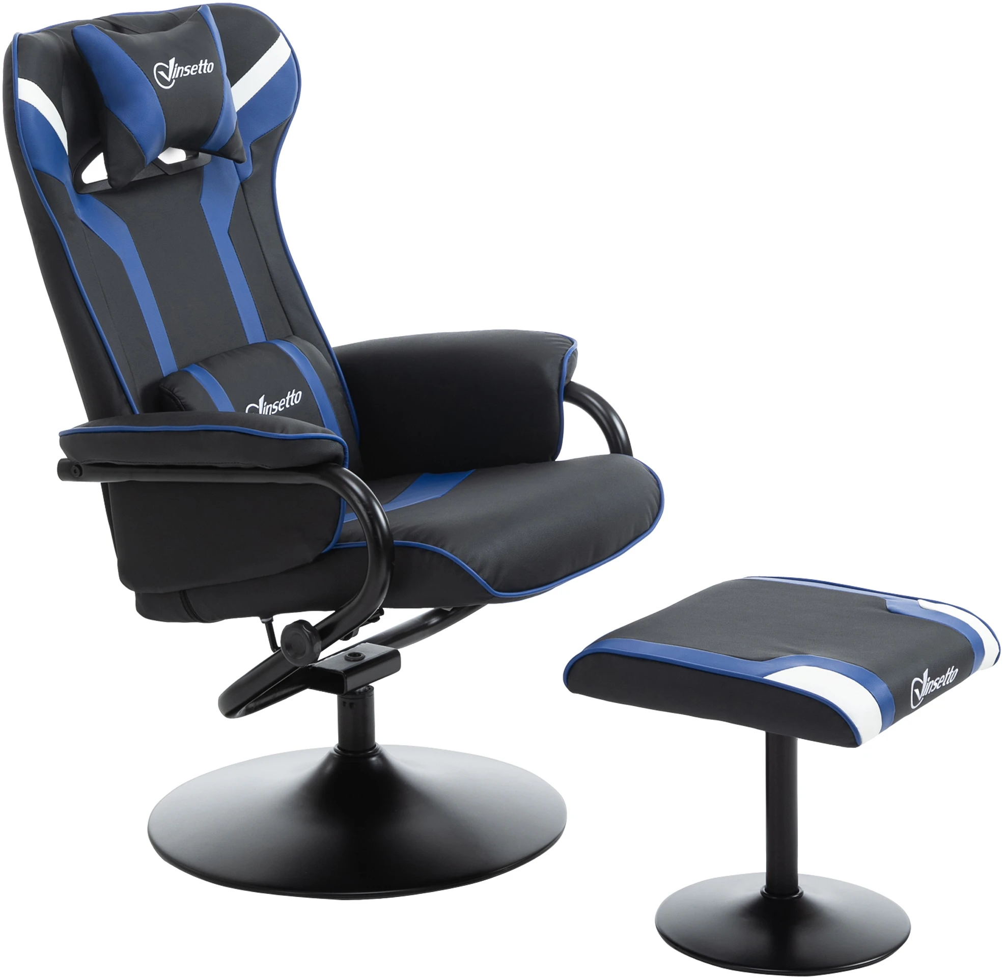 Gaming Stol med Fodskammel Sort Blå