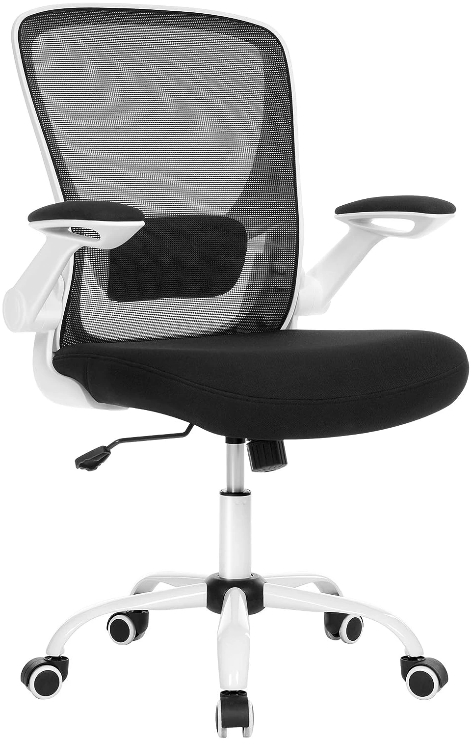 Ergonomisk kontorstol med foldbare armlæn, justerbar lændestøtte – hvid