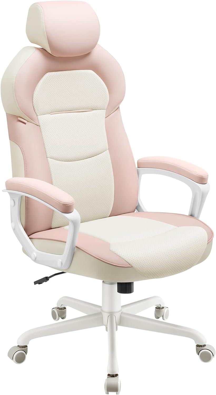 Ergonomisk kontorstol / gamingstol i læder, rosa, 150 kg.