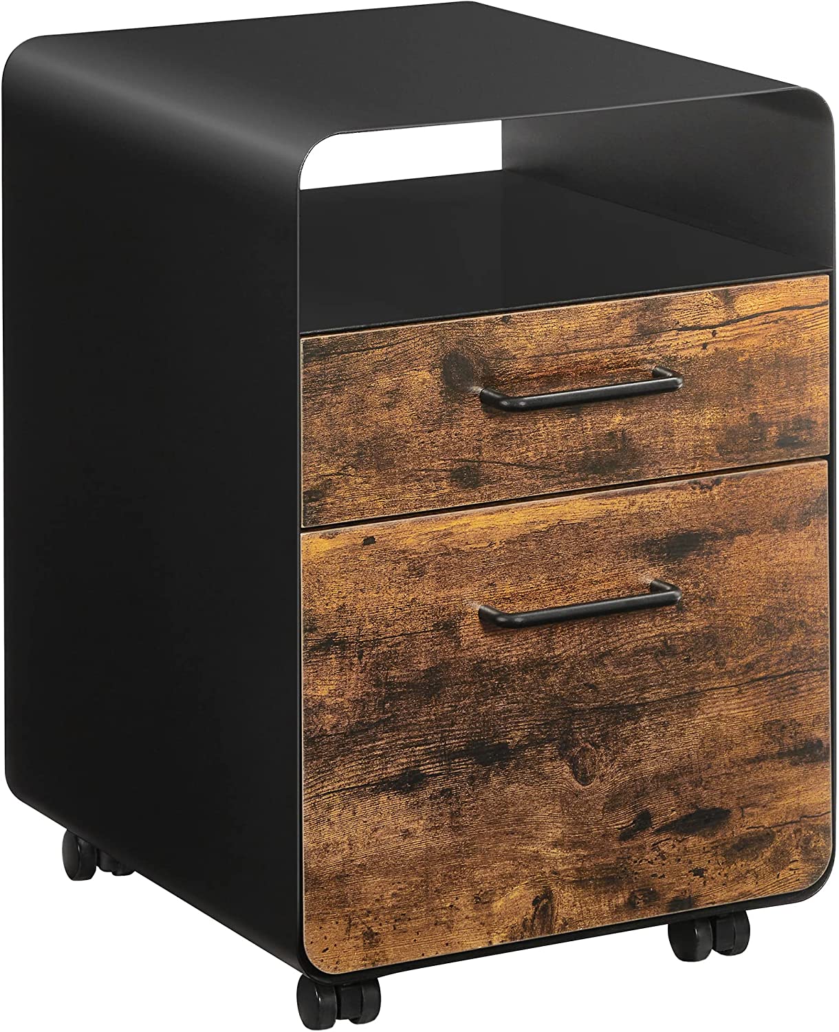 Låsbart arkivskab med 2 skuffer, 5 hjul – til A4 og brevstørrelser – sort