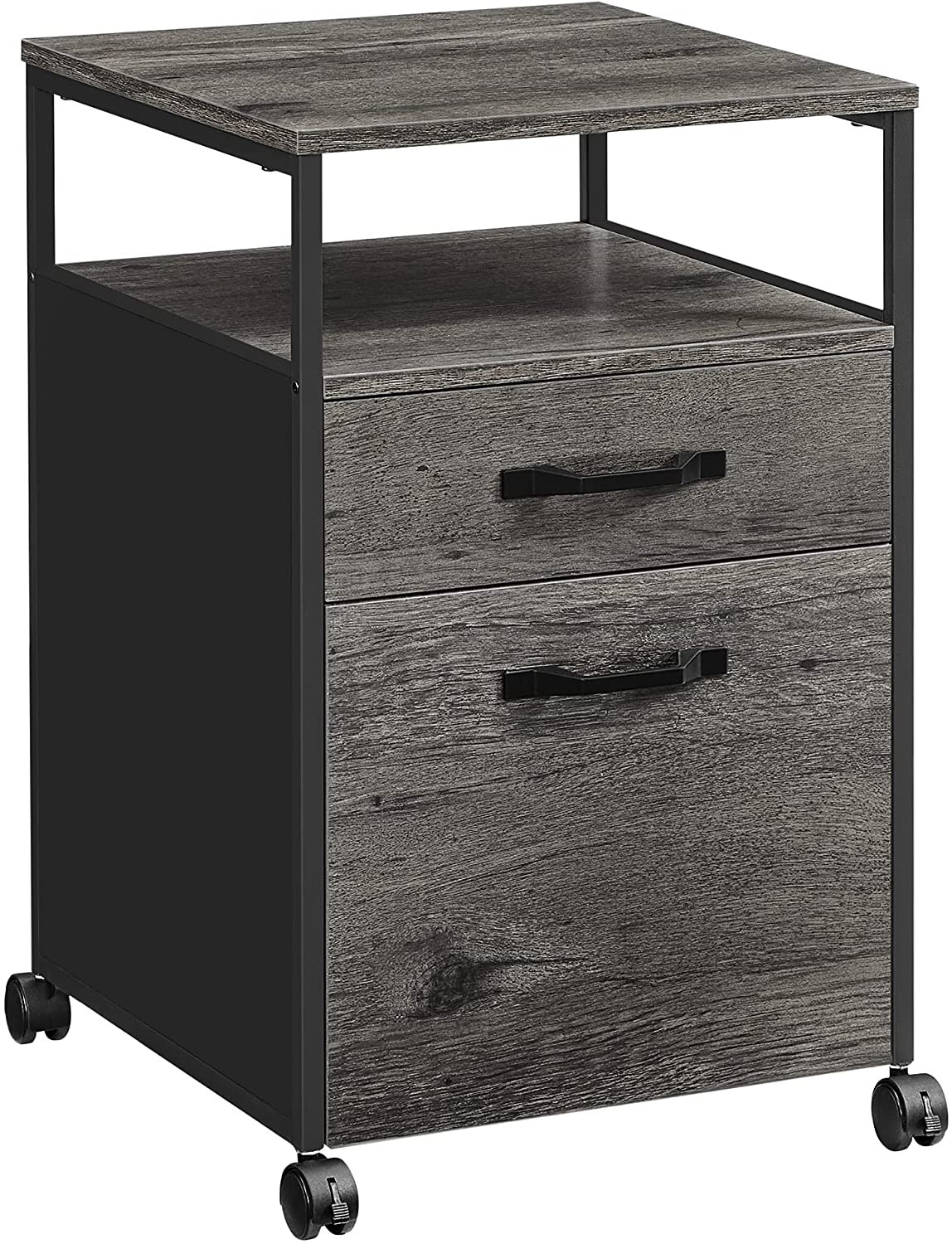 Rullende arkivskab med 2 skuffer, åbent rum – Kontorskab Grå – Sort