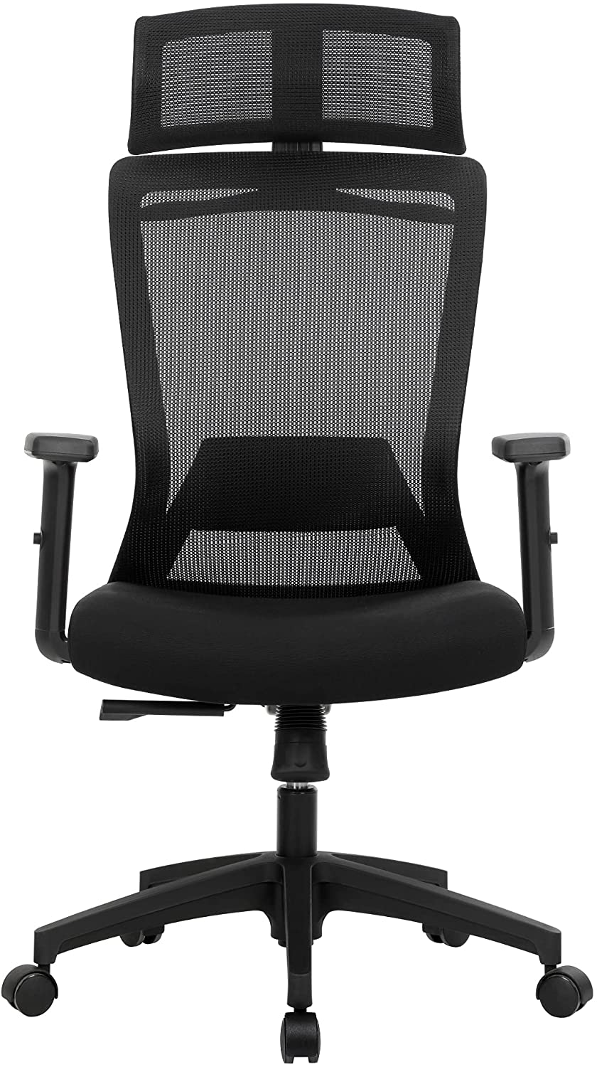 Ergonomisk kontorstol med indbygget tøjbøjle – Justerbar nakkestøtte, Armlæn – Sort