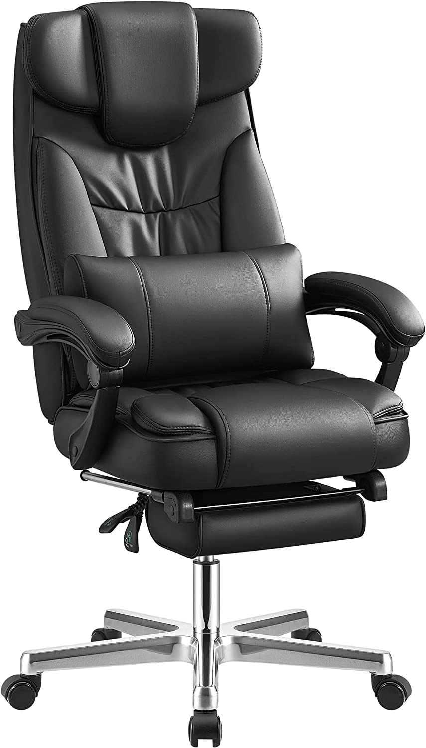 Kontorstol Luksus med Fodstøtte, Rygpude Sort